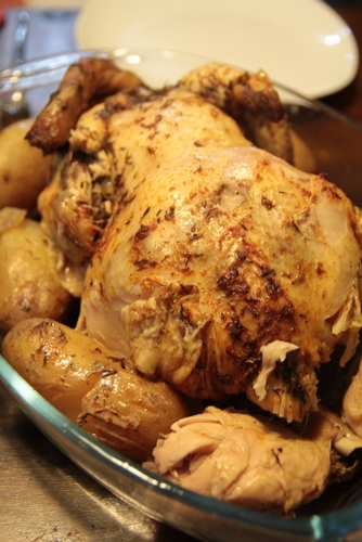 המבצעים לאחרונה במחלקת הבשרים בסופרמרקט הביאו לכך שכמעט ומשליכים עלינו את העופות השלמים בדרך לקופה. את העוף החתיכי שבתמונה קיבלתי בתמורה לשקל חדש אחד בלבד. בדרך כלל אני מכינה מהחבר'ה האלה מרק, אבל הפעם הילדים רצו וביקשו בשר.